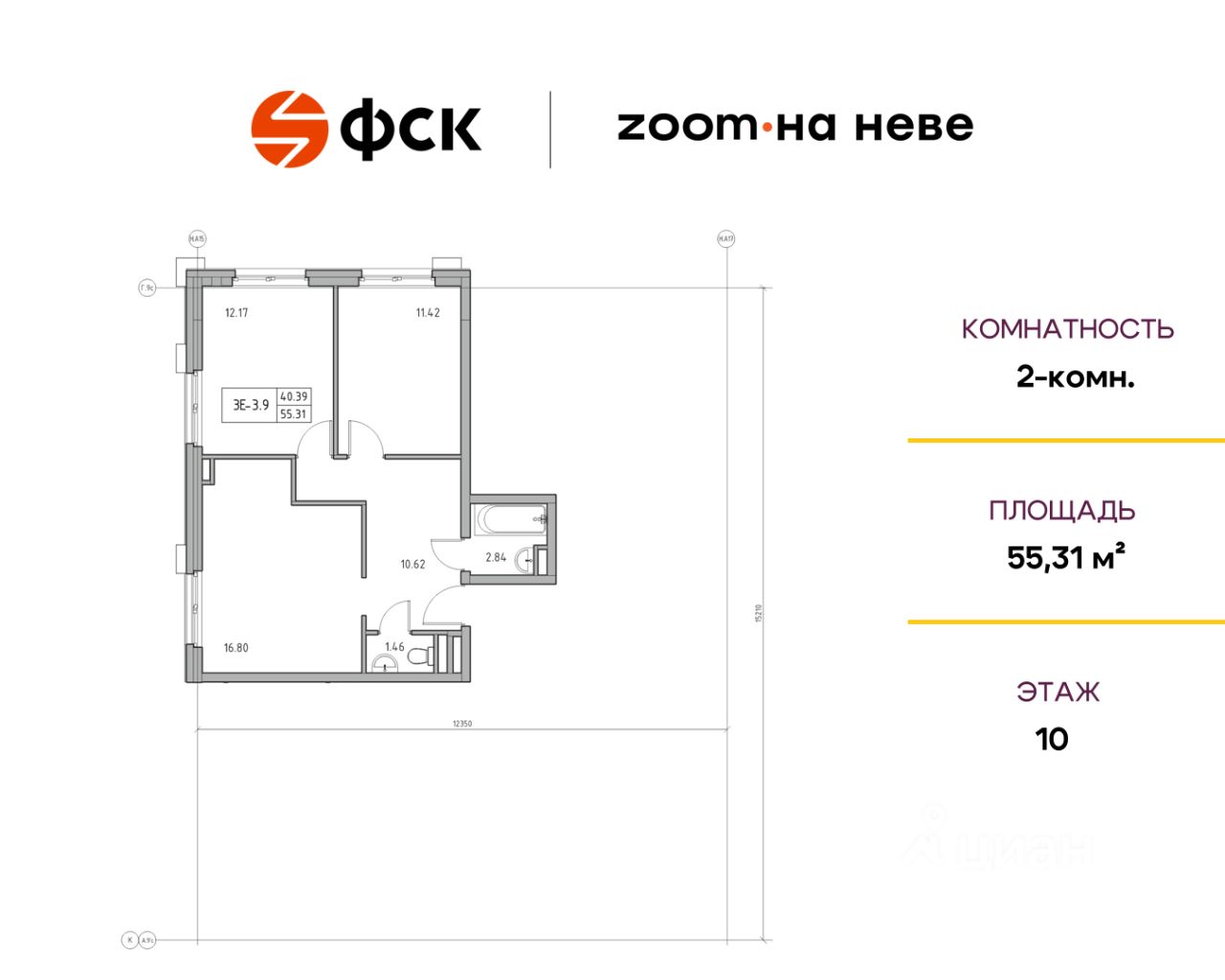 Цена со скидкой до 30% в прямой продаже от застройщика — только в этом месяце. При покупке апартаментов - паркинг за полцены. На все апартаменты действует беспроцентная рассрочка. Купите на распродаже! Покупка недвижимости в Zoom на Неве сейчас со скидкой до 30% позволит через 2 года получить доход до 6 300 000 руб. Роскошные виды на Неву. 2-к апартамент в комплексе класса бизнес-лайт Zoom на Неве на 10-м этаже. Общая площадь 55,31. Предчистовая отделка.