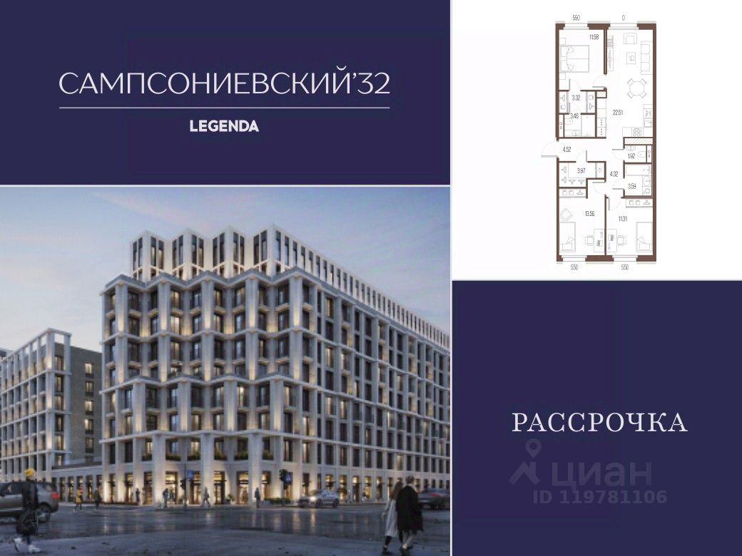 Квартира с тремя спальнями в комплексе "Сампсониевский 32" от LEGENDA на 7 этаже.