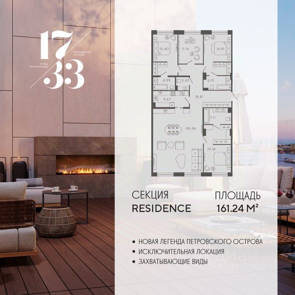 Пространство 17/33 RESIDENCE открывает двери в мир роскошной жизни, изысканной архитектуры, пятизвездочного сервиса и безграничных привилегий. Помимо уникальных планировок и эксклюзивных форматов апартаментов, будущих резидентов ждет премиальный сервис и авторская инфраструктура — гранд-лобби и музыкальная гостиная, детский клуб и просторный home office, зал для семейных праздников и зимний сад для медитаций.