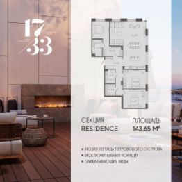 Пространство 17/33 RESIDENCE открывает двери в мир роскошной жизни, изысканной архитектуры, пятизвездочного сервиса и безграничных привилегий. Помимо уникальных планировок и эксклюзивных форматов апартаментов, будущих резидентов ждет премиальный сервис и авторская инфраструктура — гранд-лобби и музыкальная гостиная, детский клуб и просторный home office, зал для семейных праздников и зимний сад для медитаций.