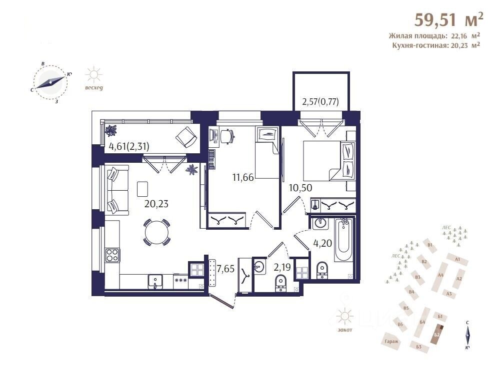 От ЖК Ranta Residence до центра Санкт-Петербурга около 60 км (по Зеленогорскому или Приморскому шоссе — они идут параллельно).