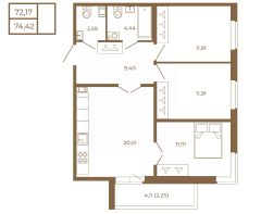 Продаётся 3-комнатная квартира в строящемся доме (Корпус 8.1), срок сдачи: IV-кв. 2025, общей площадью 74.42 кв.м., на 3 этаже. ЖК расположен в Сертолово, мкр.Черная речка. 25 минут на машине до метро Парнас, либо 30 минут до метро Пр.Просвещения.