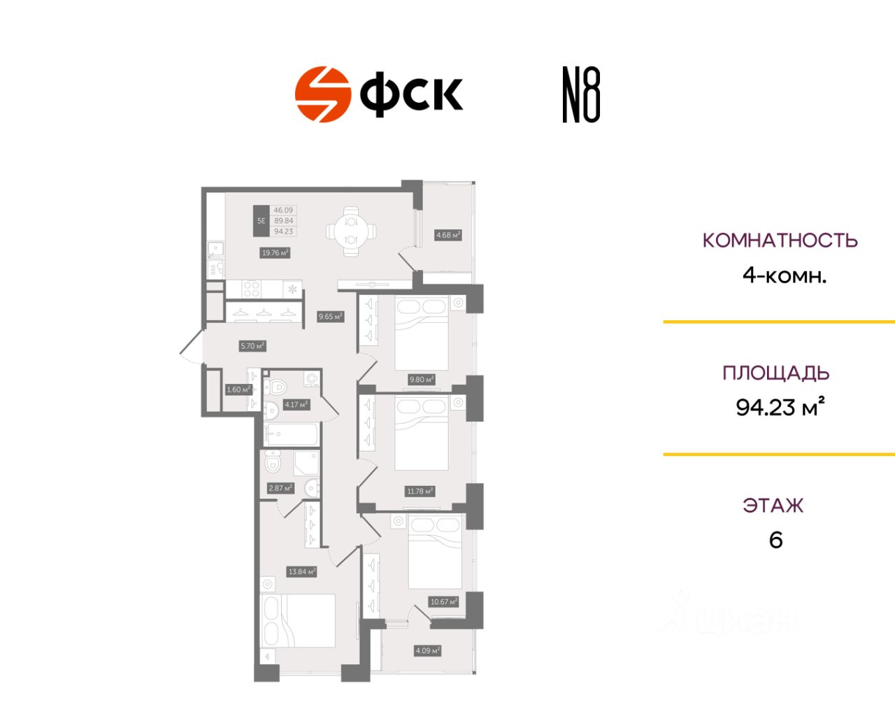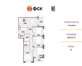 Прямая продажа от застройщика — только в этом месяце. 4-к квартира в клубном доме N8 на 6-м этаже. Общая площадь 94,23. Без отделки.