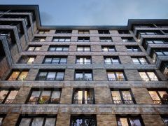 В облике дома отражены характерные черты петербургской исторической архитектуры: фактурная кирпичная кладка песочных оттенков, декоративные вставки и разностилевое остекление.
