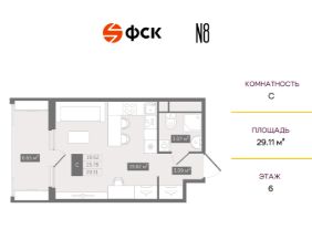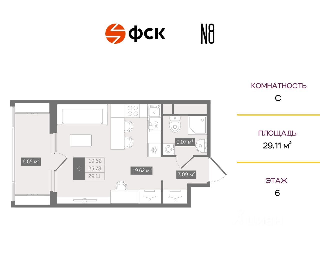 Прямая продажа от застройщика — только в этом месяце. Студия в клубном доме N8 на 6-м этаже. Общая площадь 29,11. Без отделки.