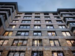 В облике дома отражены характерные черты петербургской исторической архитектуры: фактурная кирпичная кладка песочных оттенков, декоративные вставки и разностилевое остекление.