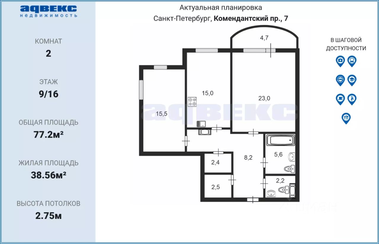 Рядом торговые центры, кафе и рестораны, детские сады, школы, кинотеатры, поликлиники и аптеки.