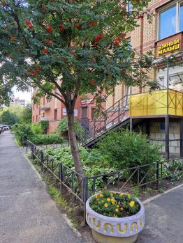 Район зеленый, ухоженная придомовая территория, вся в цветах.