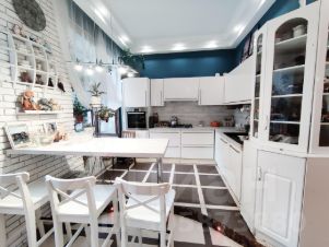 Внутри вас ждёт уютное пространство с двумя спальнями и большой кухней-гостиной площадью 41,4 квадратных метров (за счет объединения комнат и кухни, несущие конструкции при этом не затронуты). Интерьер квартиры выполнен в стиле евроремонта, что придаёт ей современный и стильный вид. Также в квартире 2 санузла, что значительно повышает комфорт проживания. Для удобного хранения вещей организована гардеробная.