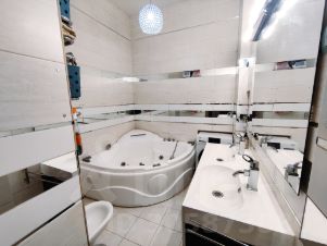 За счет увеличенных окон квартира очень светлая. Коммуникации в идеальном состоянии; для бесперебойной подачи горячей воды установлен бойлер. Центральное отопление, газовая плита, выполнены шумо- и гидроизоляция, теплый пол по всей квартире.