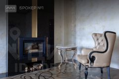 Камин в гостиной выполнен из цельных мраморных плит, привезенных из Италии, люстра- эксклюзив от Philipp Plein,напольное дубовое покрытие итальянского производства.
