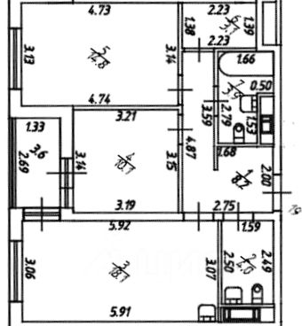 2-комнатная квартира с большой кухней. Комнаты изолированные. Выход на застекленную лоджию из кухни и из комнаты. Просторный коридор, два санузла, кладовая (гардеробная). Потолки 2,95 м.