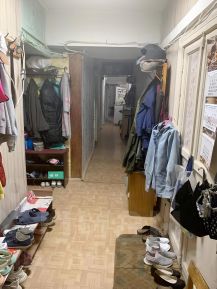 Комната торцевая, двусторонняя, находится в конце коридора, в ней два больших окна с широкими подоконниками, установлены стеклопакеты, полностью заменена электропроводка, на полу паркет. Комната в хорошем состоянии, разделена на две части, подходит как для проживания так и для сдачи в аренду, соседи согласны, сейчас в квартире сдается одна комната. За комнатой закреплены места хранения - антресоль, полка в общей кладовке и место в прихожей под шкаф и вешалку.