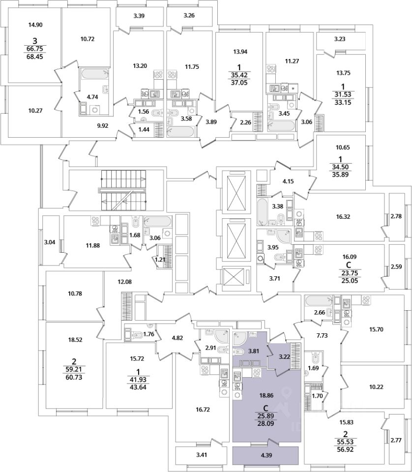 Квартира находится в 22 этажном доме, в Корпус 3 на 13 этаже. Общая площадь квартиры 28,10 кв.м.