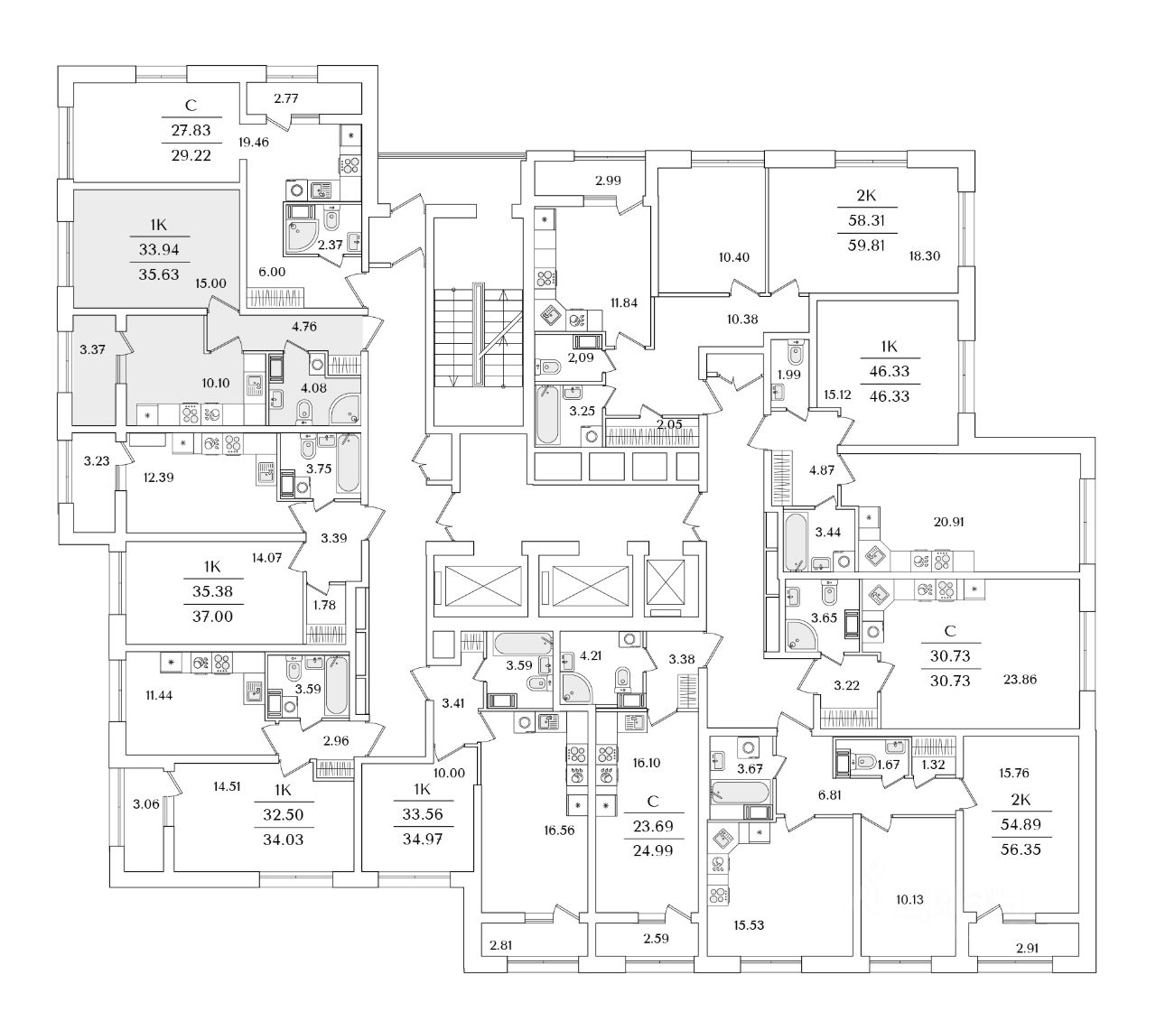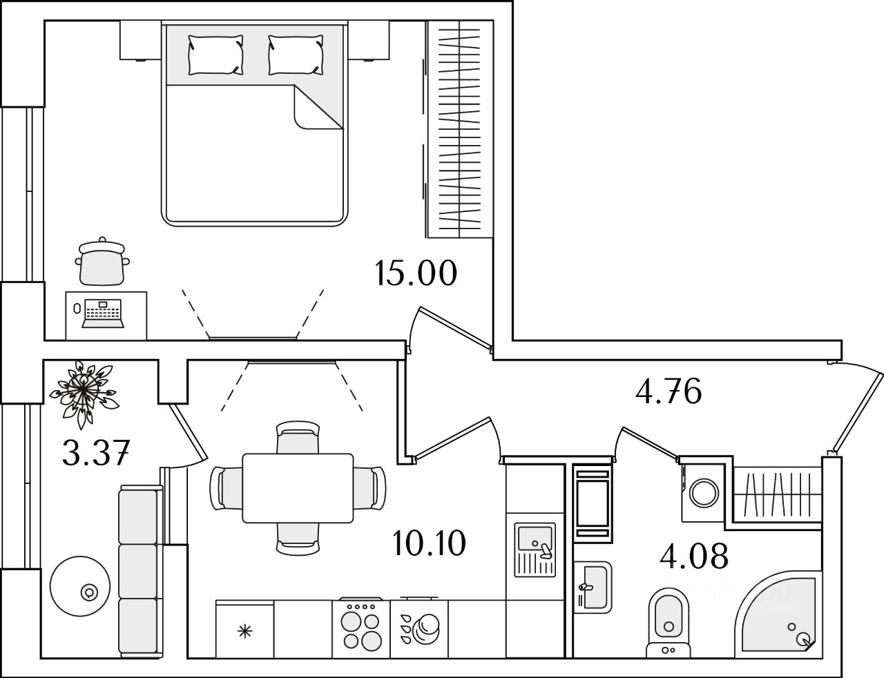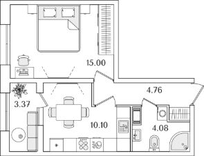 Квартира находится в 22 этажном доме, в Корпус 5 на 3 этаже. Общая площадь квартиры 35,63 кв.м.
