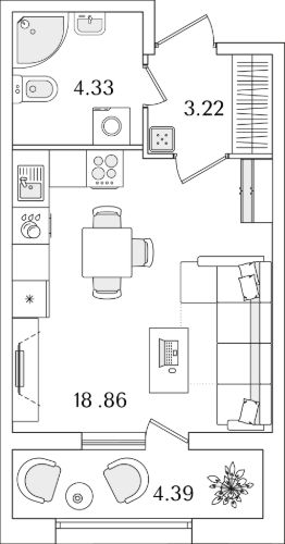 Квартира находится в 22 этажном доме, в Корпус 5 на 3 этаже. Общая площадь квартиры 28,61 кв.м.