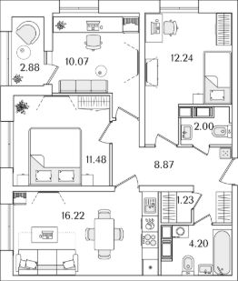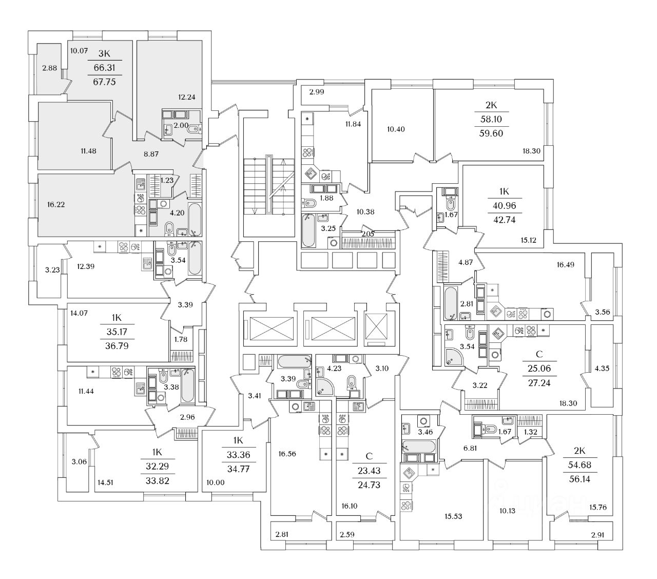 Квартира находится в 22 этажном доме, в Корпус 5 на 15 этаже. Общая площадь квартиры 67,75 кв.м.