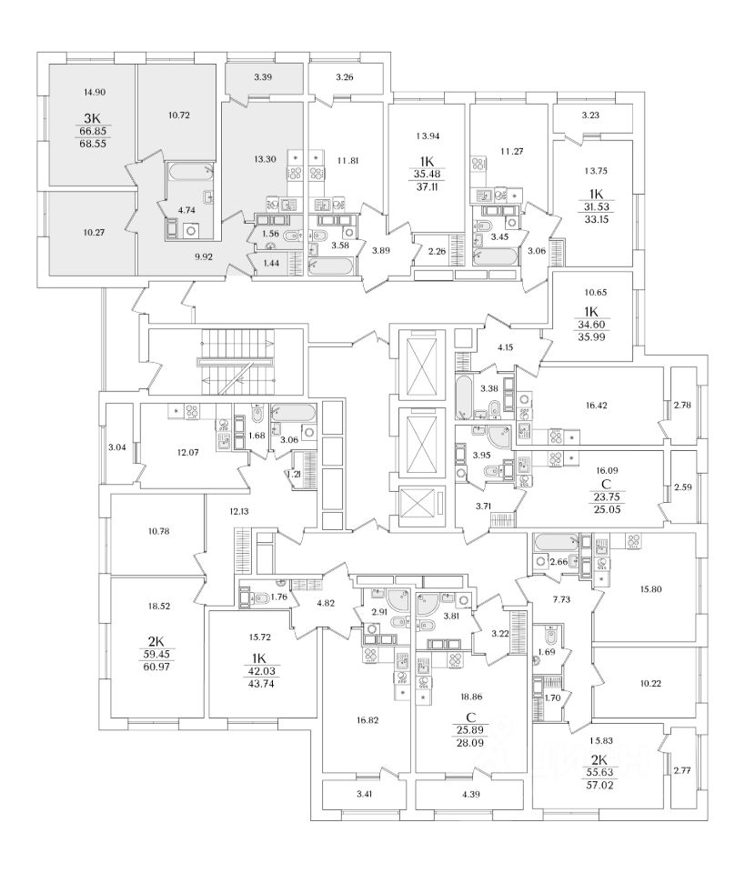 Квартира находится в 22 этажном доме, в Корпус 5 на 15 этаже. Общая площадь квартиры 68,55 кв.м.