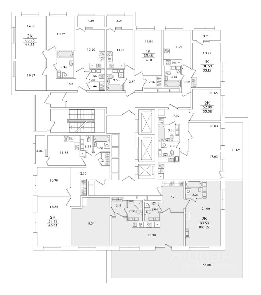 Квартира находится в 22 этажном доме, в Корпус 5 на 16 этаже. Общая площадь квартиры 100,27 кв.м.
