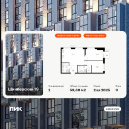 Продаётся 2-комн. квартира площадью 59,8 кв.м на 9 этаже 12 этажного дома (Корпус 1, Секция 7) проекта ПИК Шкиперский 19. Светлый просторный подъезд на уровне земли, функциональная планировка, большие окна, предчистовая отделка.