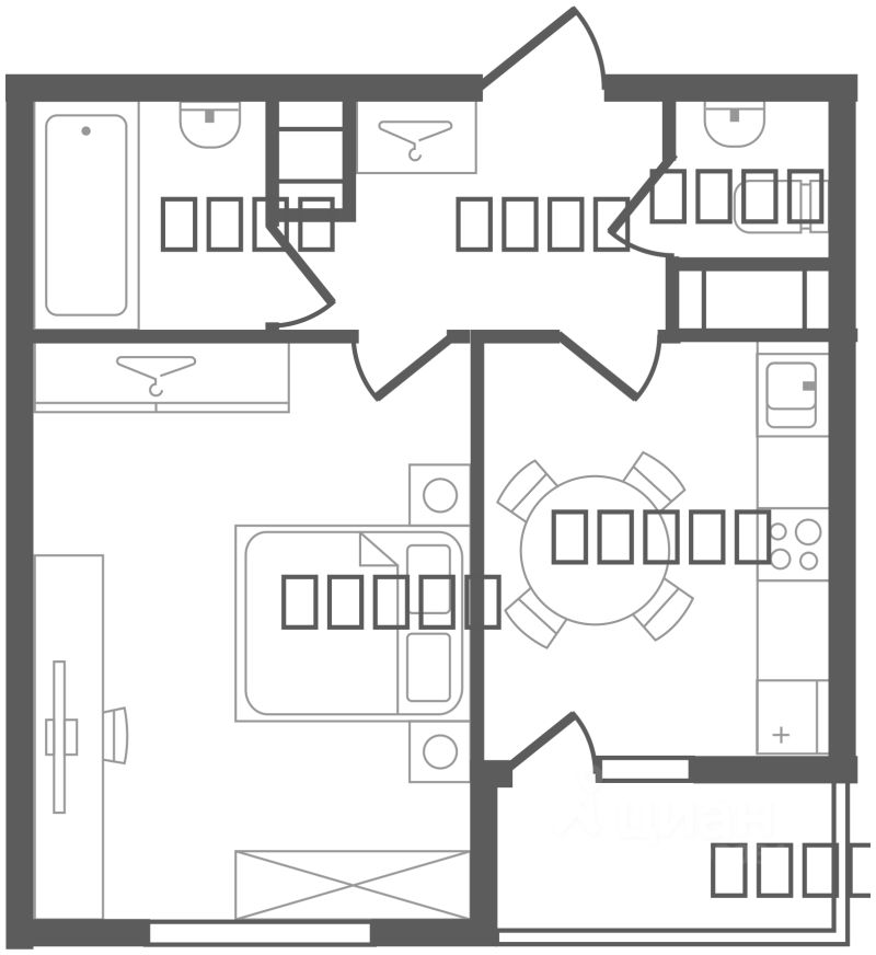 В трех домах жилого комплекса "Ювента" представлено к продаже более тысячи квартир с количеством комнат от одной до трех (а также квар
