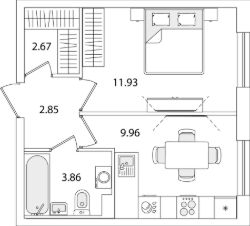 Квартира находится в 9 этажном доме, в Очередь 1, Корпус 1 на 2 этаже. Общая площадь квартиры 31,27 кв.м.