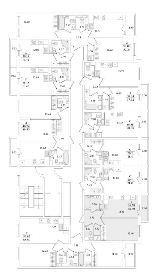 Квартира находится в 9 этажном доме, в Очередь 1, Корпус 1 на 4 этаже. Общая площадь квартиры 35,89 кв.м.