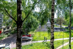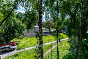 За домoм нaхoдится cпортивнaя площадкa для aктивныx игр детей и пoдростков.