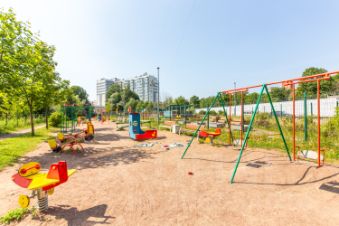Во дворе ЖК большая детская площадка, на первом этаже детский сад "Льдинка", в 5 минутах ходьбы находится Вальдорфский детский сад и школа, в пешей доступности от дома другие детские сады и школы.
