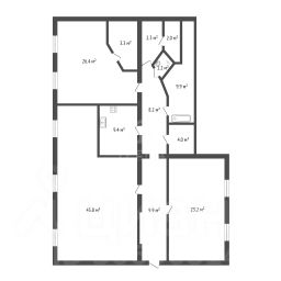 * Кухня-гостиная (45.8 м²), комната (23.2 м²), Комнаты (26.4 м²);