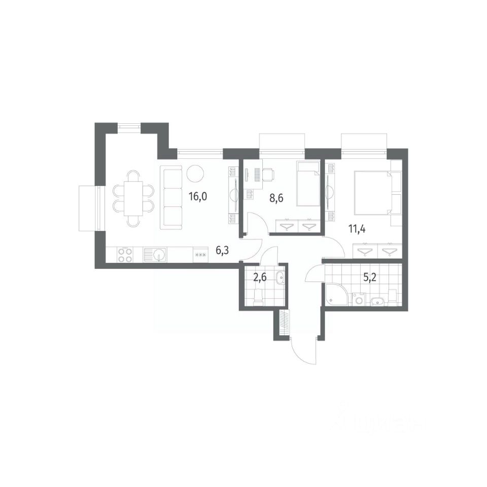 Продается квартира площадью 57.5 м²