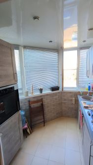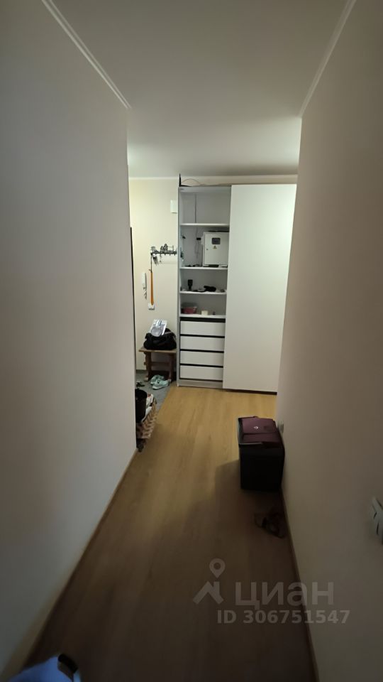 В результате перепланировки квартира была преобразована из однокомнатной в двухкомнатную: кухня была перенесена на лоджию, где она теперь совмещена с гостиной, а на месте бывшей кухни расположилась спальня. Квартира оснащена современными удобствами, включая теплые полы в ванной и на балконе, что обеспечивает комфорт в любое время года.