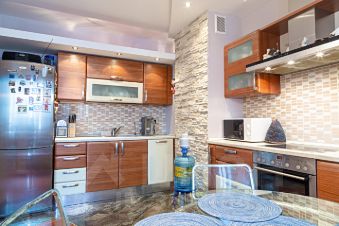 Квартира с дизайнерским ремонтом,при котором использованы качественные стройматериалы,с застеклённым большим балконом и лоджией, с панорамным остеклением.Большая кухня-гостинная и три изолированные спальные комнаты,много света и простора.В квартире 2 санузла,в одном из них расположена большая ванна,в другом-душевая кабина.Окна выходят на север и юго-восток.Во многих местах использованы теплые полы,паркетная доска и итальянская плитка.Встроенный итальянский кухонный гарнитур и бытовая техника остаётся в дар покупателям.Один собственник,более 10 лет в собственности.