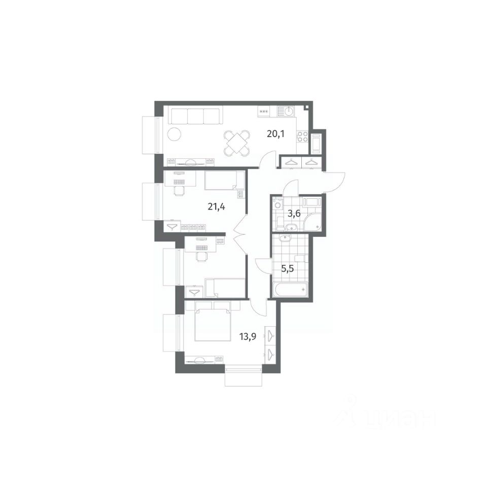 Продается квартира площадью 75.9 м²