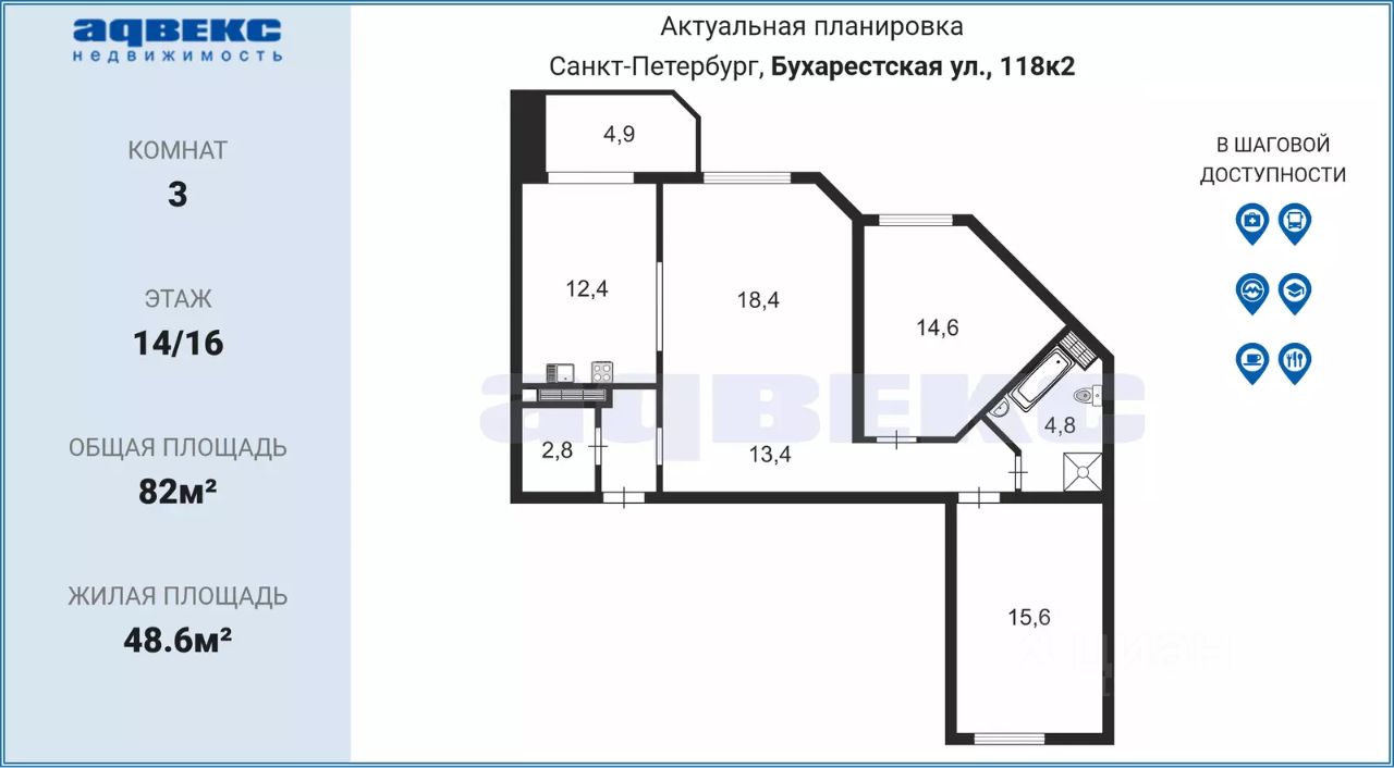 Просторная квартира с удобной планировкой, готовая для комфортного проживания.
