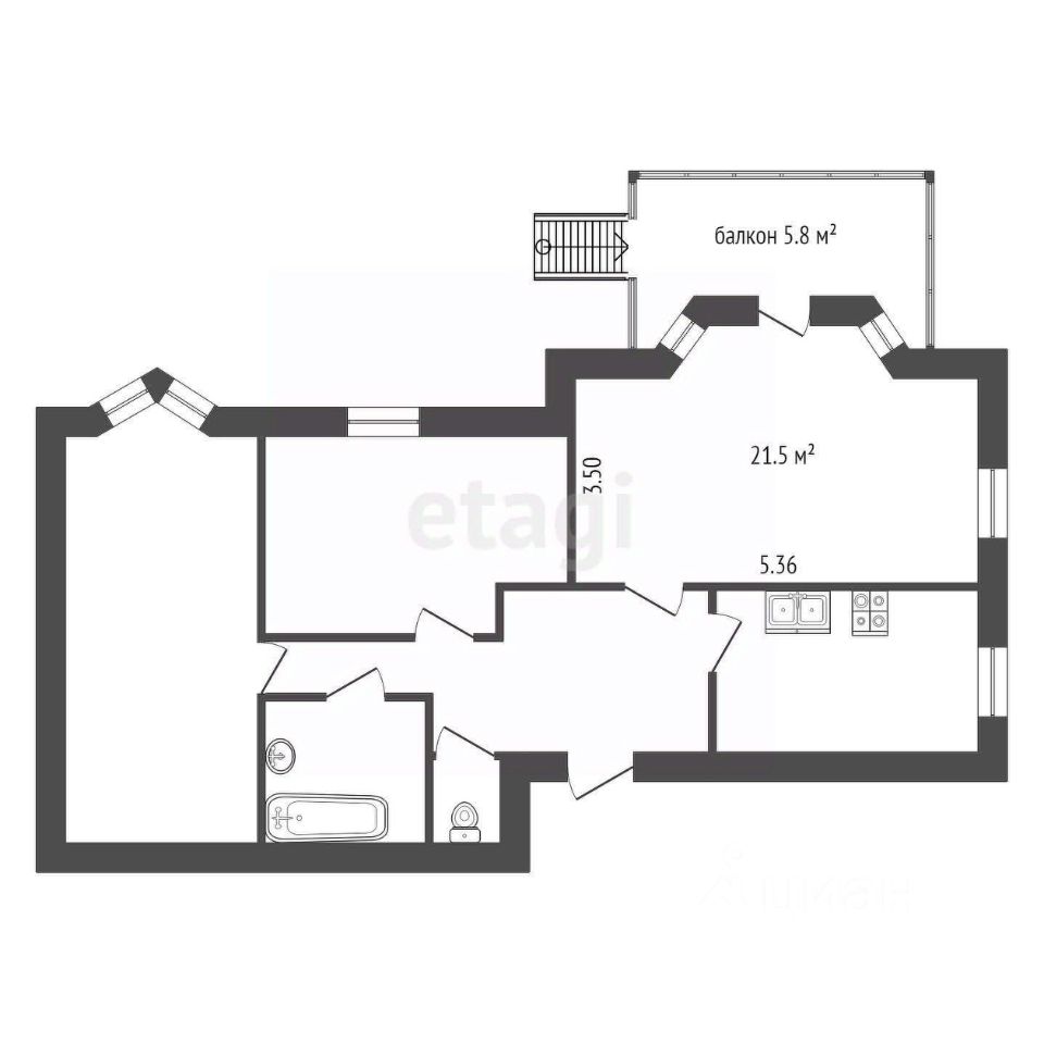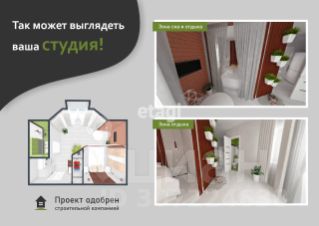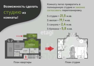 Имеется возможность застеклить балкон и узаконить перепланировку, увеличив площадь комнаты/студии до 27,5 кв.м.