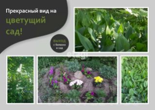 + Под окном в саду, весной расцветают ландыши, цветет черемуха и белая сирень, благоухают цветы, растущие в клумбе. А летом, после дождя, из грибницы вырастают шампиньоны!!! На этом кусочке земли царит настоящая сказка! Поэтому, свою комнату с небольшим цветущим участком земли отдаем, только в хорошие руки!))