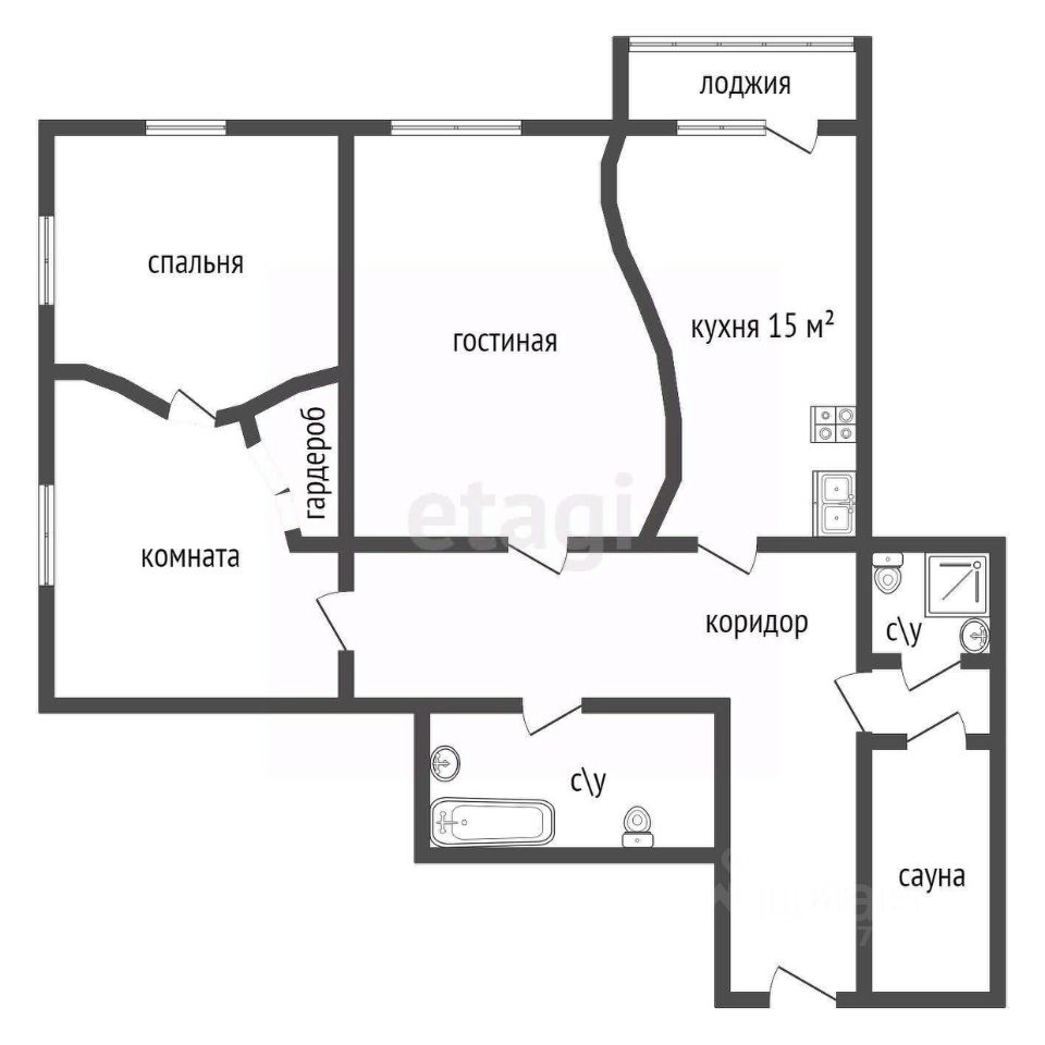 Ванна с гидромассажем, два кондиционера. Дополнительной особенностью квартиры является Сауна! Вся мебель и бытовая техника остается новым владельцам.