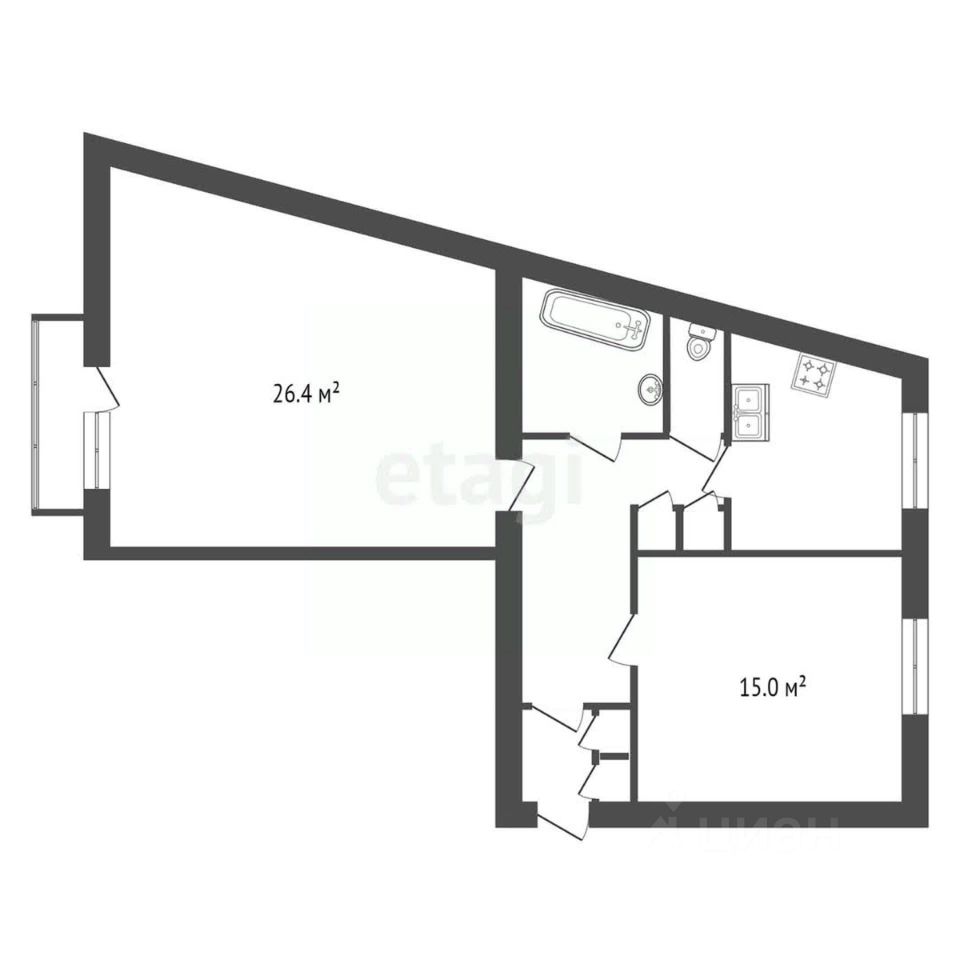 + две изолированные комнаты 11,8 м² и 15.5 м²