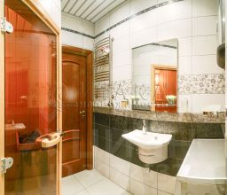 - два санитарных узла. Один гостевой (5.6 кв.м.) с сауной, второй (8.2 кв.м.)  с ванной  джакузи.Кроме того, в квартире имеются: