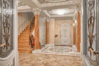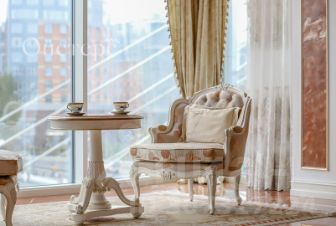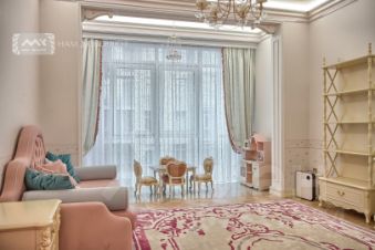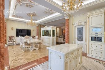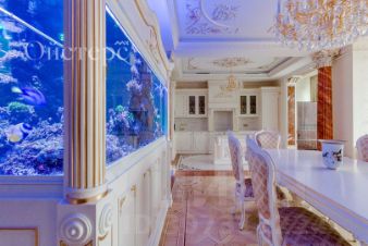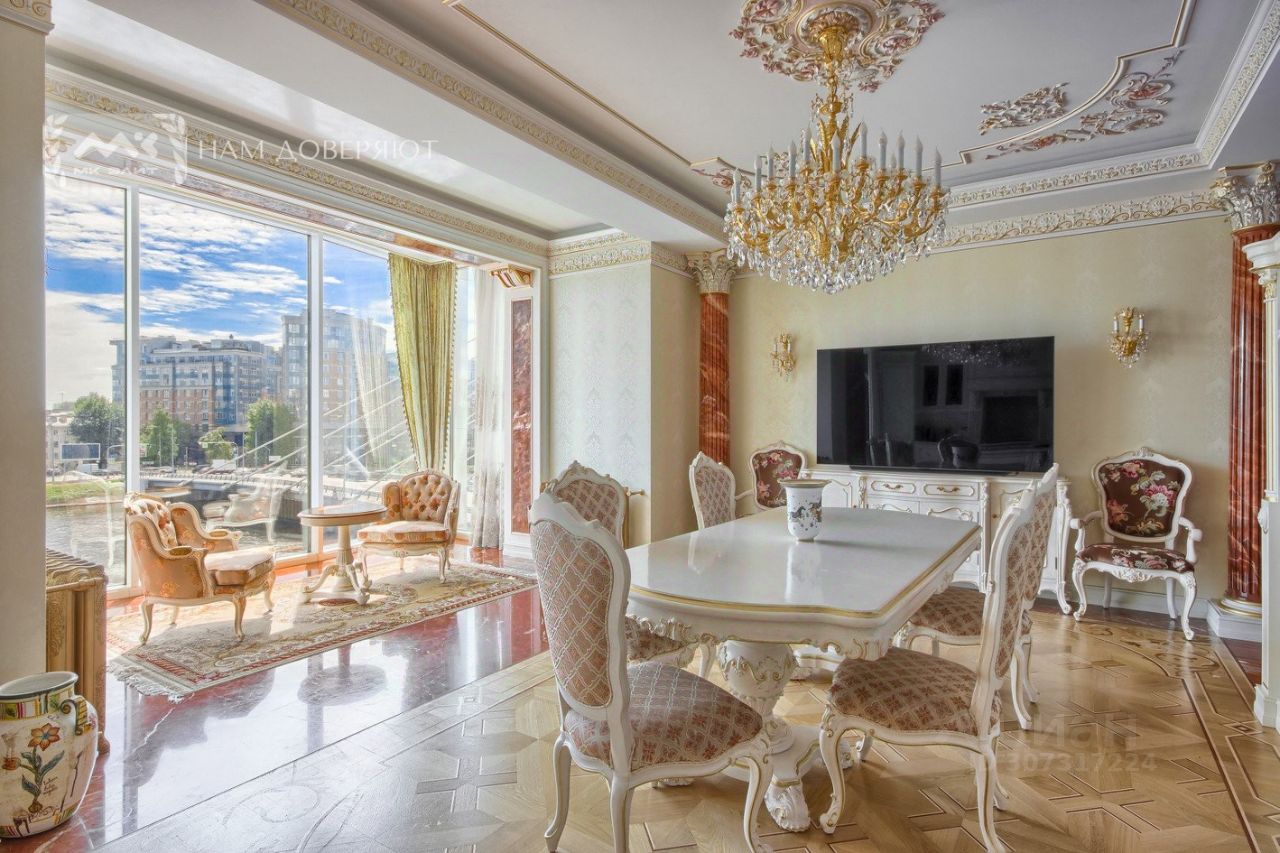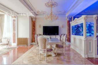 В квартире сделан новый ремонт по авторскому дизайн-проекту в классическом стиле. В оформлении интерьеров использованы высококачественные материалы и декоративные элементы: резная мебель, лепной декор и натуральный камень. Приватная зона второго этажа включает в себя три спальни, гардеробные и три просторные ванные комнаты, джакузи с видом и сауну. На первом этаже расположены кабинет, ванная комната, гостевая спальня и просторная кухня-гостиная с панорамными окнами, сквозь которые открывается великолепный вид на акваторию реки Малая Невка.