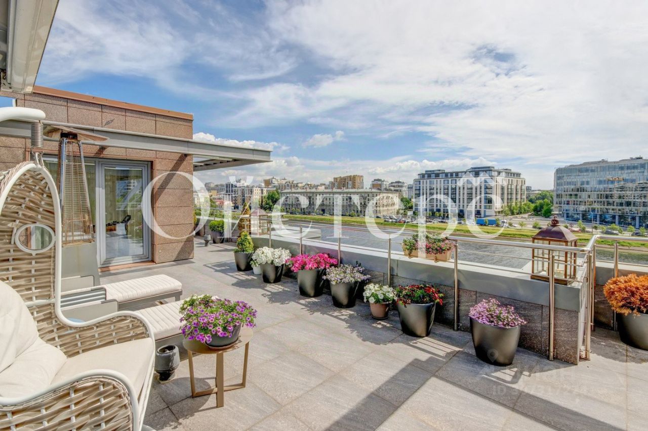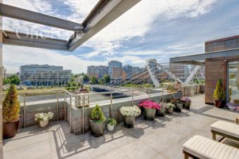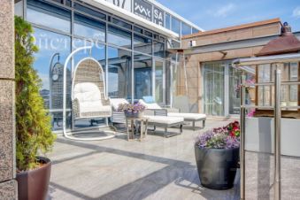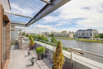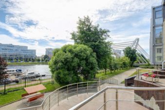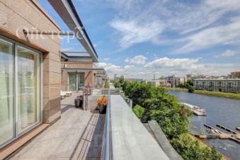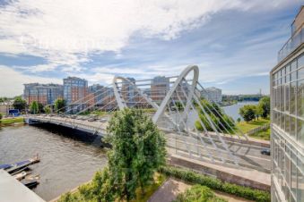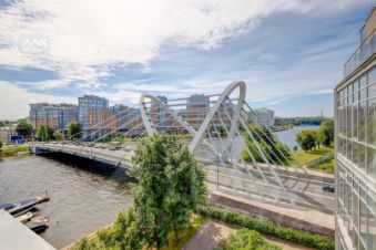 Особой чертой этой квартиры является открытая терраса 90 м2, идеально подходящая для отдыха на свежем воздухе. С неё открывается прекрасный вид на акваторию Малой Невки и Лазаревский мост.