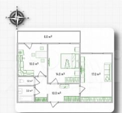 Застекленная лоджия 6,3 м, выход из кухни, позволяет сделать дополнительное пространство для отдыха.