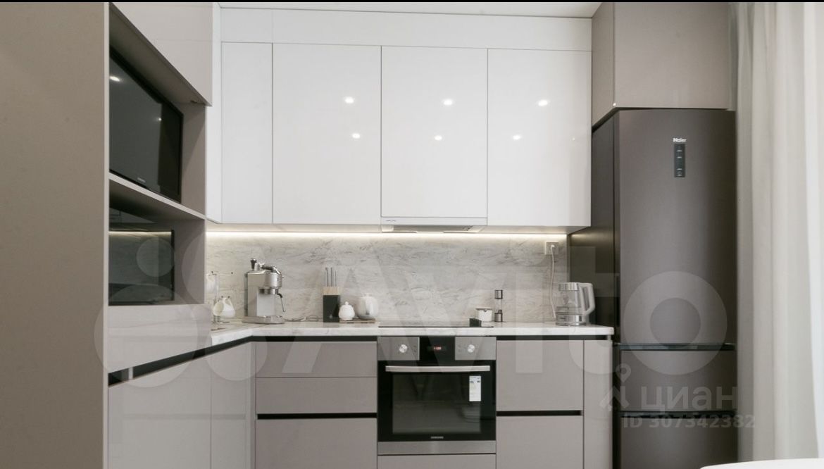 Остается встроенный кухонный гарнитур с бытовой техникой (посудомоечная машина, духовка, варочная панель, микроволновка).
