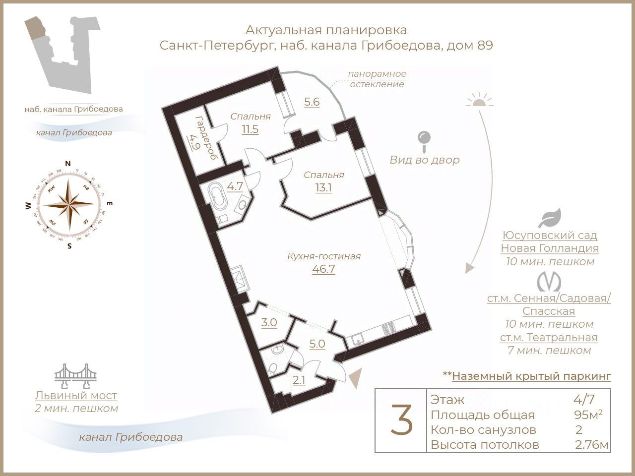 Развитая инфраструктура Адмиралтейского района, пешая доступность станций метро "Садовая", "Сенная площадь" (скоро открытие "Театральной") и тихий центр делают это место особенно привлекательным для жизни. Уютный приватный двор ограждает от шума и суеты, а всего за 15 минут прогулки вы окажетесь в культурном парке "Новая Голландия" или сможете прогуляться до главных достопримечательностей города.