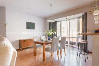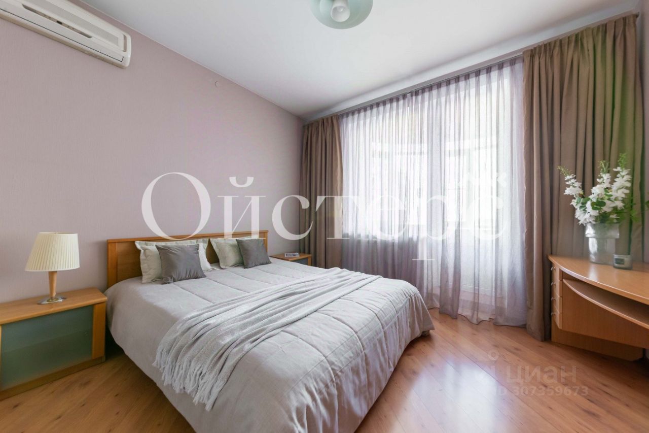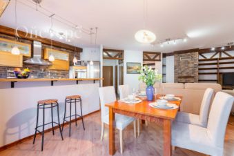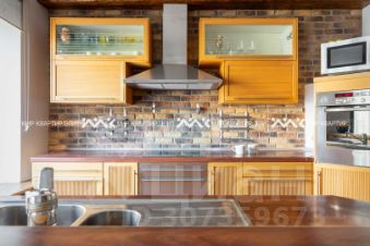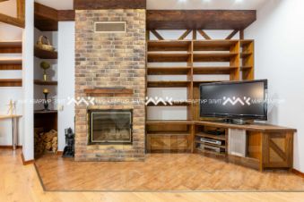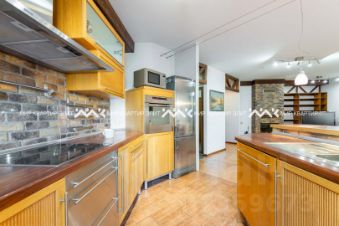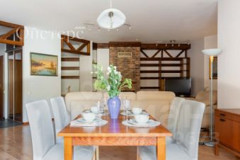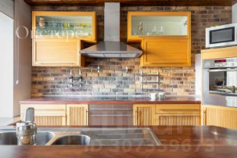 Планировка квартиры включает просторную кухню-гостиную с эркером, две спальни, два санузла и гардеробную. Особенностью этой недвижимости является действующий дровяной камин.