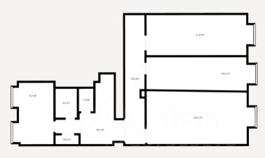 Комнаты - 22,3 м², 17,2 м² и 14,2 м²