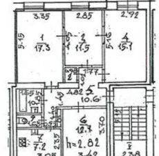 15,1+11,5+17,3+12,7 итого 56.6 общая жилая площадь комнат. Прихожая 10.6 кв. м. большая гостиная(17,3)относится к МОП, две кладовки, кухня, ванна и туалет раздельно. Продам сама - не тороплюсь. Собственник один(комнаты/доли приобретались мной в разные года). Есть остаток по ипотеке. Причина продажи - переезд. За наличку хороший торг. Прописан один взрослый собственник - я.