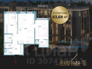 Продается квартира с 2 спальнями в жилом комплексе бизнес-класса "Взлетная 16".