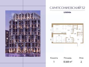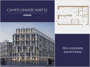 Квартира с одной спальней в комплексе "Сампсониевский 32" от LEGENDA на 2 этаже.